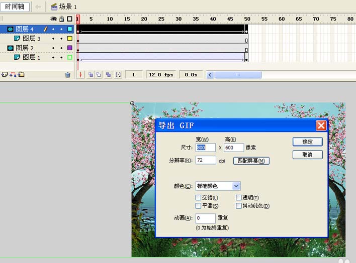 10、執行文件-導出-導出影片命令,在彈出的對話框中選擇格式為動畫gif,輸入名稱,點擊確定按鈕,在彈出的導出gif對話框中直接點擊確定按鈕。