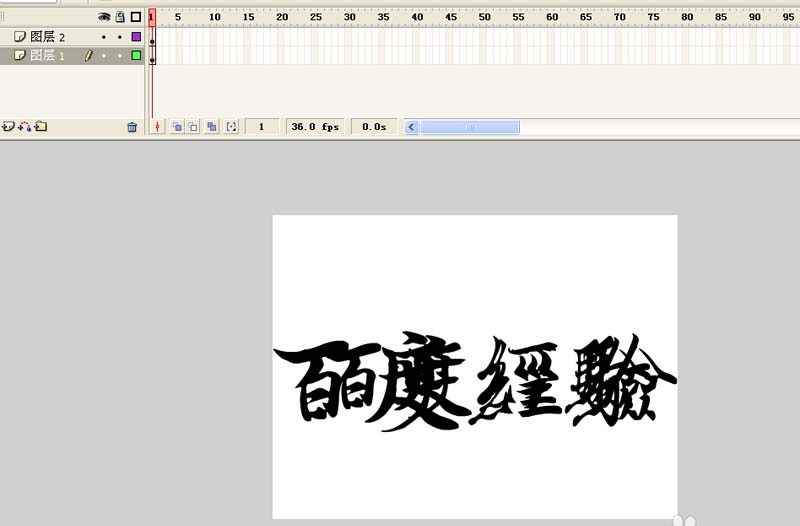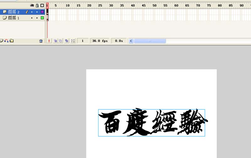 3、執行ctrl+b組合鍵將文字打散,接著執行ctrl+g組合鍵組合成一個整體,新建圖層2,選擇文字執行ctrl+c組合鍵進行復制,選擇圖層2第一幀執行ctrl+v組合鍵進行粘貼操作。
