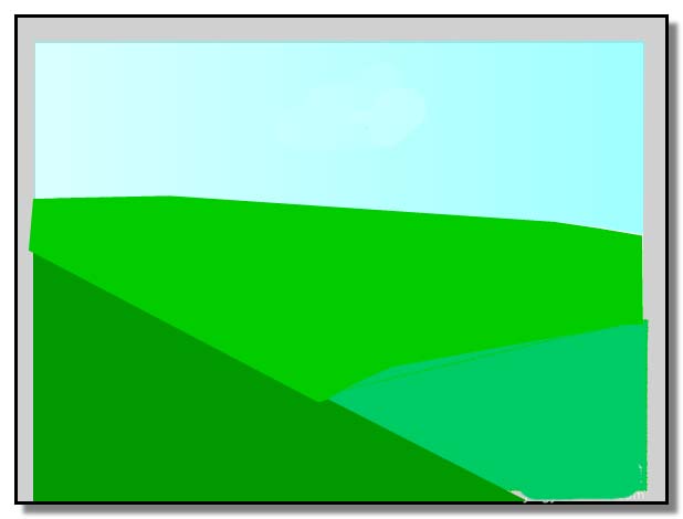 4、在天空這里,用橢圓工具畫幾朵白云。再用線條工具畫出兩束光線。從左上角向右下照射。背景圖層在這里基本完成。在這里看到花朵,小草等露出了舞臺,這個沒關系的,保存后,觀看動畫時,只顯示舞臺這個范圍的。下面接著制作蝴蝶、蜻蜓、風車的動畫。