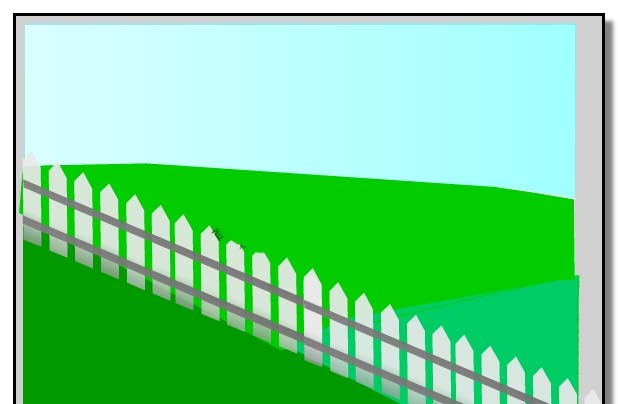 2、選取線條工具,畫出尖頭的木板,并填充上顏色,復制再粘貼,粘貼多些,然后,再用線條工具畫兩條木條把這些木板連接在一起,制作成欄柵。