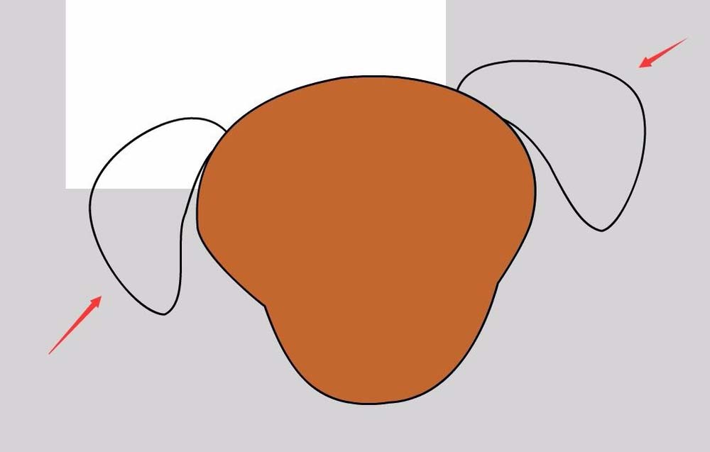 8、使用鋼筆工具,繪制兩個形狀,作為狗狗的耳朵,如圖所示: