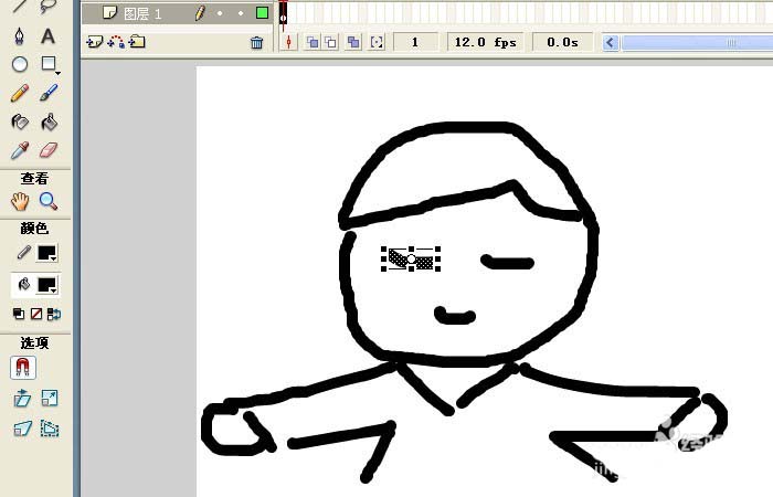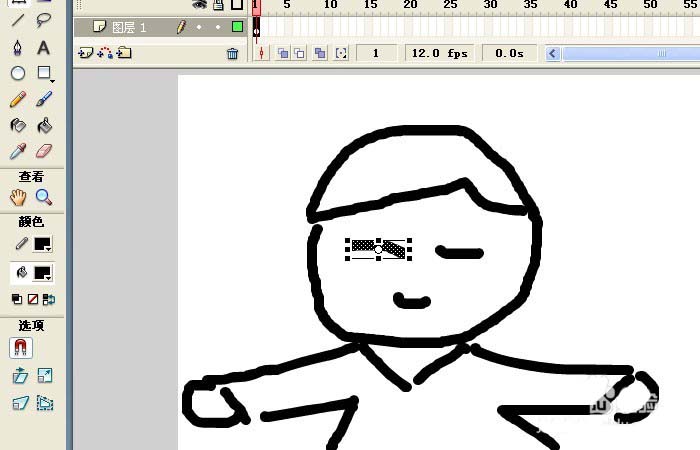 6、接著,取消選用的任意變形工具,查看卡通男孩圖形的改變,眼睛的曲線旋轉(zhuǎn)了,并且拉長了,如下圖所示。