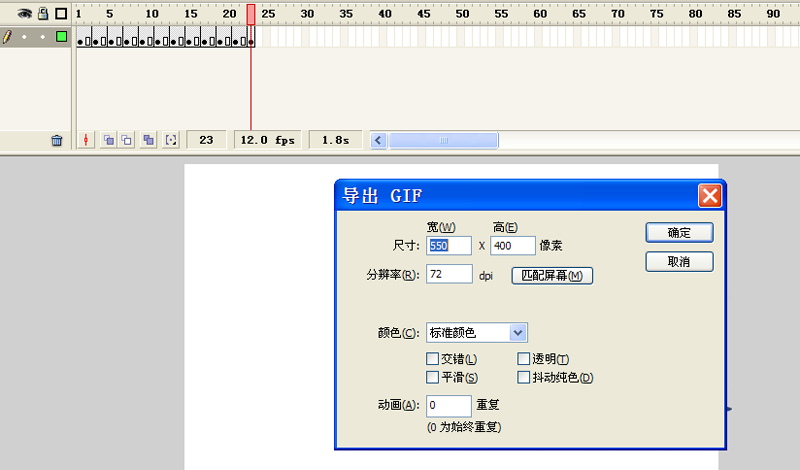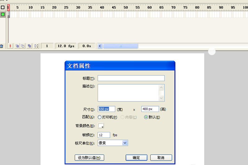 1、首先啟動(dòng)flash8,新建一文檔,設(shè)置大小為550*400,幀頻為12fps,背景顏色為白色。