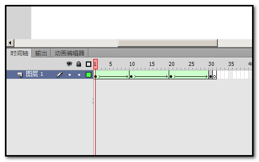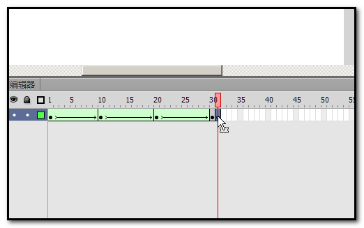 2、我們在第31幀這里點下,記住,不要放開鼠標,就這樣點住。往左邊移,移到第10幀的位置。