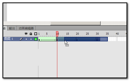 6、再點住向左移,移到目標位置,再放開鼠標,這樣,就能把第10幀到第20幀這一段縮短,第20幀到第30幀這一段拉長。