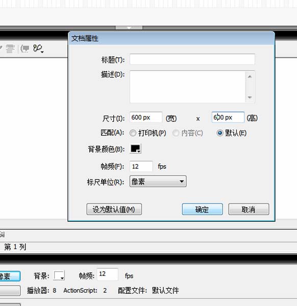 1、首先啟動flash8,新建一文檔,大小設置為600*600,背景顏色為黑色,幀頻為12fps。