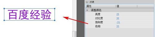11、選擇“調整顏色”濾鏡進行設置:為顏色屬性輸入值。屬性和它們的對應值如下:對比度調整圖像的加亮、陰影及中調。亮度調整圖像的亮度。飽和度調整顏色的強度。色相調整顏色的深淺。