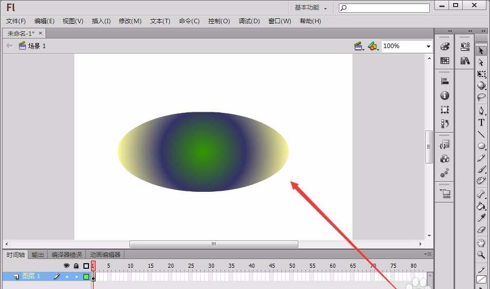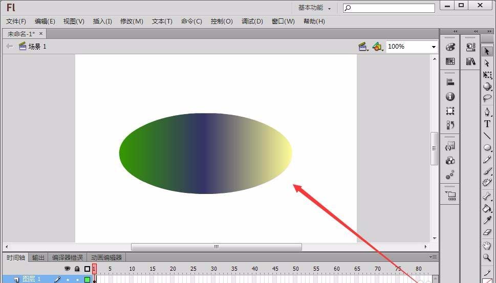 8、用橢圓工具在舞臺上繪制一個橢圓,填充色即為線性漸變色了。