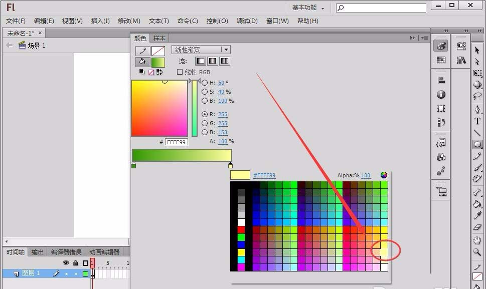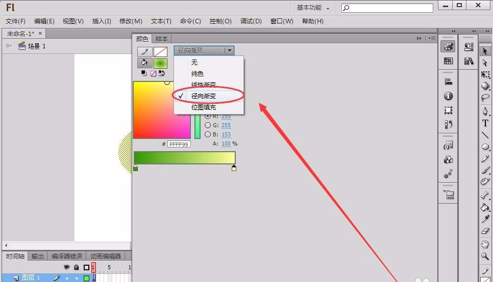 flash中想要填充漸變色,該怎么填充漸變色呢?下面我們就來舉一個簡單的例子,請看下文詳細介紹。