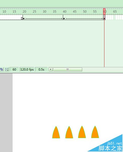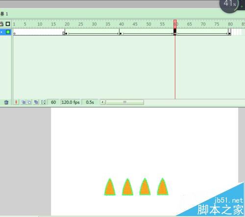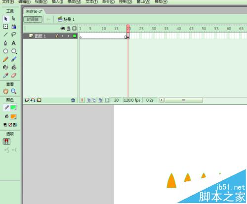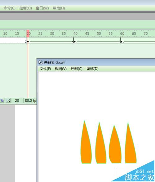3、復制繪制的三角形;并且在20幀處添加形狀補間動畫;