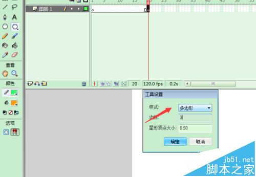 2、在第二十幀處添加關鍵幀;選擇多變形工具,繪制一個三角形;