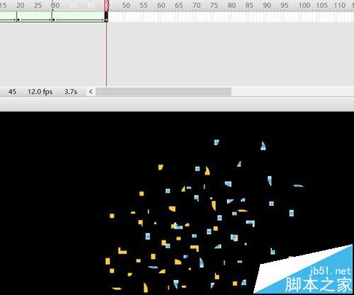 6、第20幀插入關(guān)鍵幀,將所有碎片移至更遠(yuǎn)些的地方?;氐降?幀,創(chuàng)建形狀補間。