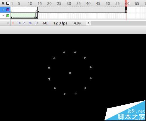 14、第60幀F(xiàn)5插入幀。15到60幀是碎花元件的總幀數(shù)。