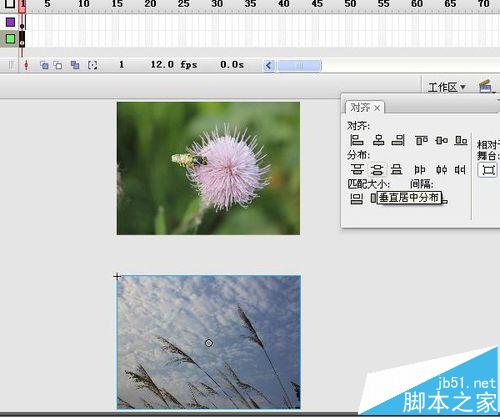 4、新建一層,將展示圖,圖1元件剪切至此層,我給該層取了個名字,圖片層;原層就叫背景層。背景層里還有兩張圖片,將圖2元件Delete鍵刪除,暫時還用不著它。在對齊面板中將背景圖寬度和高度居中,圖片層中的圖片也同樣處理。