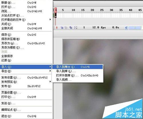 1、導入方法:文件——導入——導入到舞臺。當然也可以導入到庫,因為下一步對圖片編輯,所以直接導入到舞臺。不論導入到哪里,都可以在庫中找到。