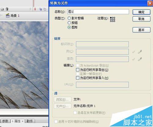 3、一個個選中圖片,分別將它們變為影片剪輯元件。方法:選中一張圖片,F8鍵調出轉換為元件面板,類型選影片剪輯元件,取個名字,OK。