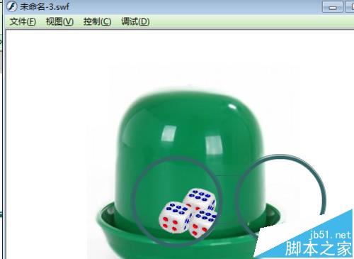 用FLASH模擬,透視眼鏡,觀看骰盅里的骰子點(diǎn)數(shù)。用到遮罩等命令。
