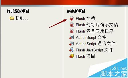 1、打開FLASH軟件;新建FLASH文檔;