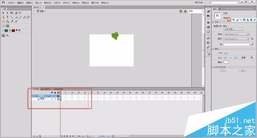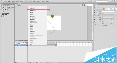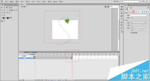 15、選中圖層1的最后一幀,把樹葉放到引導線的結尾處,如圖