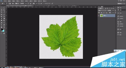 3、把樹葉拖到ps中,然后用魔術橡皮擦工具剔除背景,如圖
