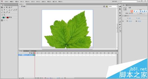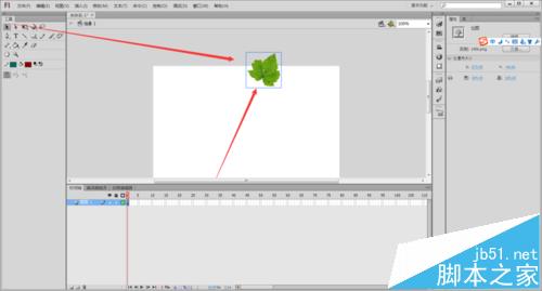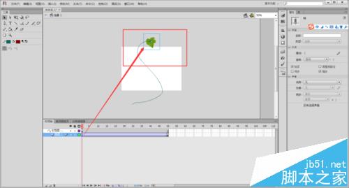 14、選中圖層1的第一幀,把樹葉放到引導線的開始處,如圖