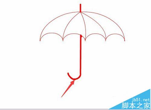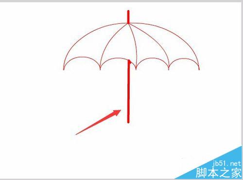 10、再在工具箱內(nèi)找到鋼筆工具,用鋼筆工具繪制傘吧的把手,如圖所示: