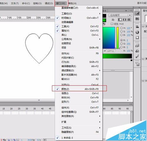 7、拖動好了之后,我們給這個桃心做一個漸變色。首選我們選擇窗口-->顏色或按快捷鍵alt+shift+F9,跳出如圖對話框。