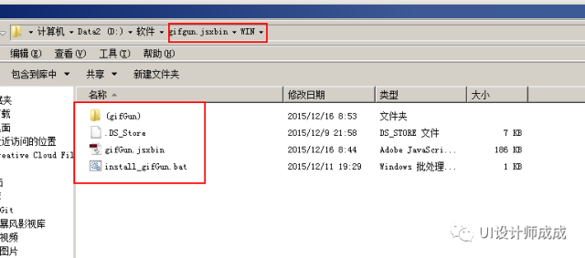 1、將插件壓縮包gifgun.jsxbin解壓,找到里面的win文件夾