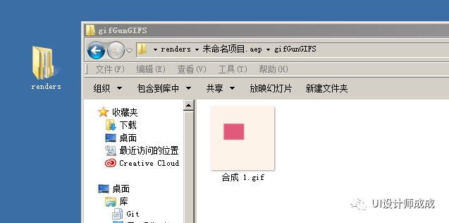 8、桌面找到renders文件夾,進入找GIF圖片即可。有些時候會因為設置問題直接生成到桌面或者其他文件夾,這個根據情況找就行了。