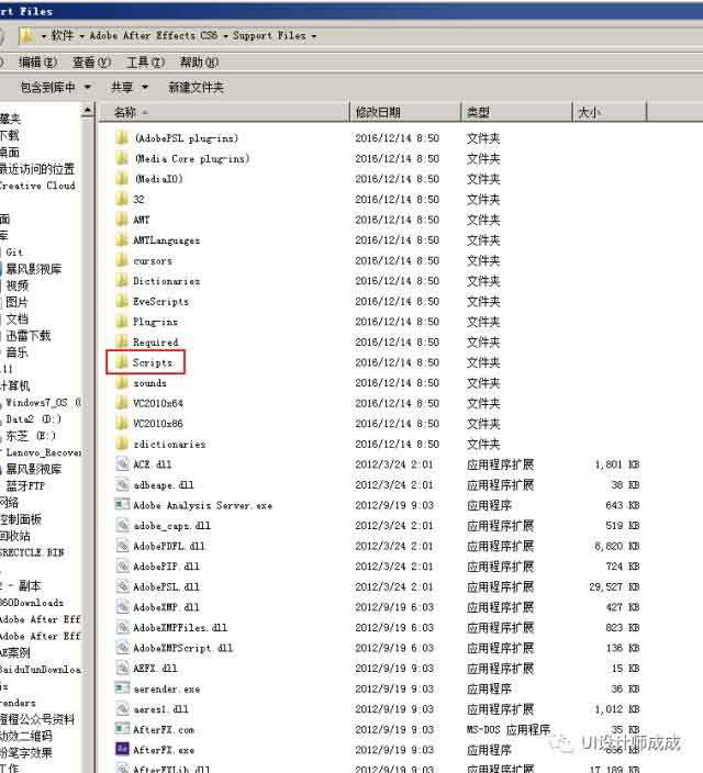 3、右鍵桌面AE快捷方式,選擇打開文件位置,進入如下界面,按照如圖路徑找到s cripts--s criptUI Panels,將剛才復制的文件粘貼到這個s criptUI Panels文件夾里面。