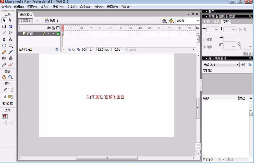 5、在下面的“屬性”面板中同樣也可以看到幀頻的數值,一般制作動畫時由于畫面的需要可能會關閉“屬性”面板。