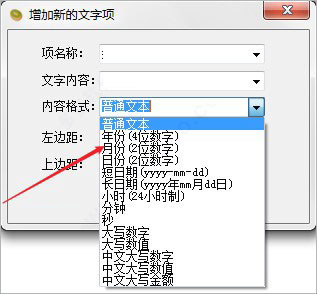 5、再在信息項中選擇【添加文字項】,可自定義多種內容文本格式;