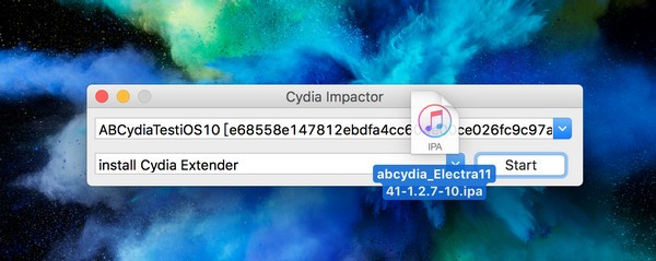 3:拖動 下載好的 abcydia_UndecimusX.ipa 拖到 Cydia Impactor 里
