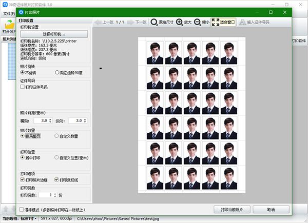 8、處理完成后,點擊按鈕,彈出打印照片的界面,如下圖所示:
