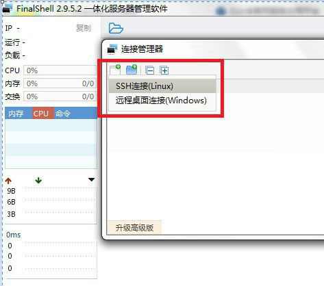 雙擊桌面FinalShell快捷方式打開“FinalShell”軟件,選擇打開“連接管理器”菜單選項,如下圖所示。在彈出的“連接管理器”中,選擇打開新增選擇,如果是要遠程連接Linux系統(tǒng),選擇“SSH連接”選項,如下圖所示。