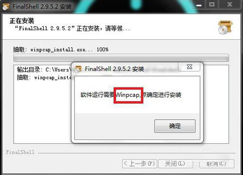 雙擊下載的FinalShell安裝包,在程序安裝過程,可能會提示需要安裝“Winpcap”軟件,點擊確認即可。按照程序的默認安裝步驟即可。如下圖所示。