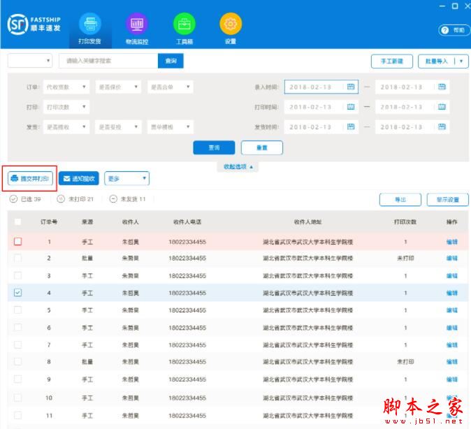 3、 步驟三:勾選需要打印的訂單,點擊提交并打印,選擇打印機以及面單模板,點擊打印即可。打印失敗的訂單,可導出失敗數據