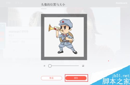 在彈出的調(diào)整圖片大小的界面中,點(diǎn)擊保存按鈕保存頭像