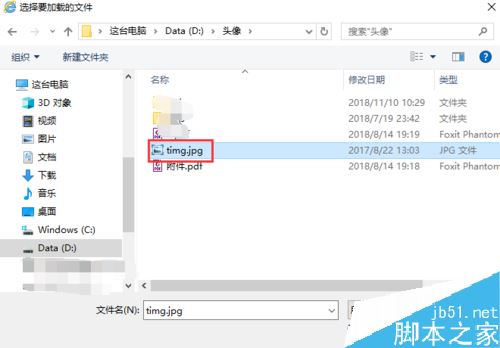 選擇頭像圖片,我這里上傳的是jpg格式的圖片,點(diǎn)擊打開按鈕開始上傳