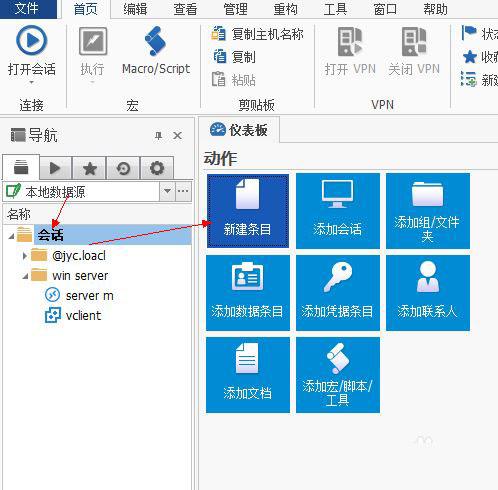 5、鼠標(biāo)選中主機(jī),然后單擊打開會(huì)話: