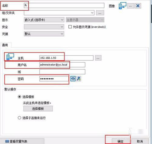 4、輸入名稱,主機(jī)IP,用戶賬號(hào)和密碼,然后單擊確定按鈕: