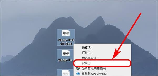 “”的安裝和普通字體沒有差別,雙擊后點擊“安裝”或者將字體文件解壓→全選,然后右鍵選擇“安裝”即可。