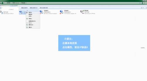 點擊更改適配器設置,在本地連接處單擊鼠標右鍵,點擊屬性,雙擊IP協議4。