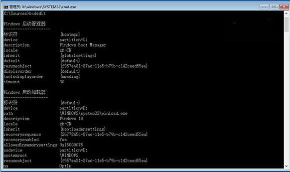 在命令提示符中輸入bcdedit回車,你會看到上圖所示的結果,找到名為resumeobject的條目,記錄后面的一長串字符(即GUID),