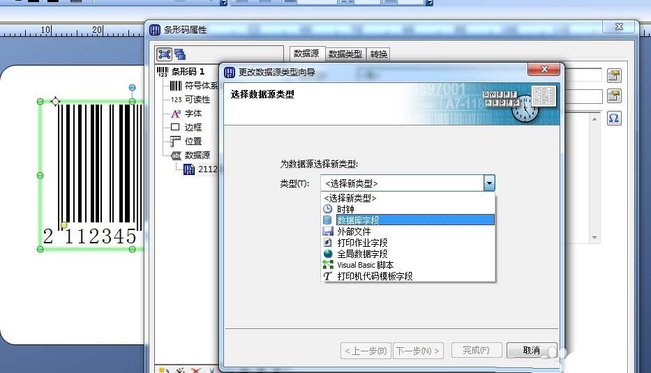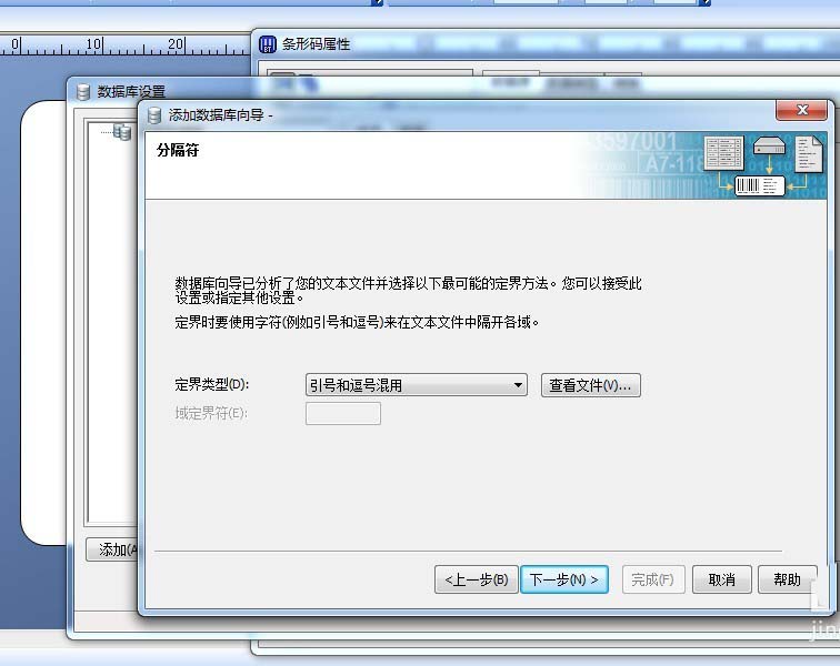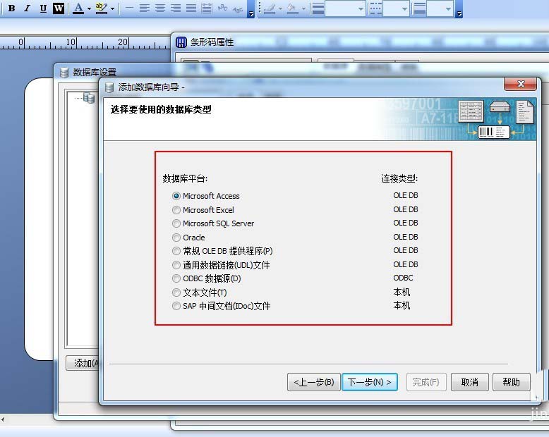 7、數據庫平臺,根據自己條碼的來源來選擇,我這邊選擇文本。下一步。