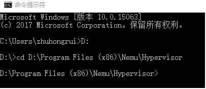 再輸入“cd D:/Program Files (x86)/Nemu/Hypervisor”
