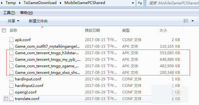 5、這些后綴為apk文件的東西,就是我們從騰訊手游助手里下載的手機游戲。