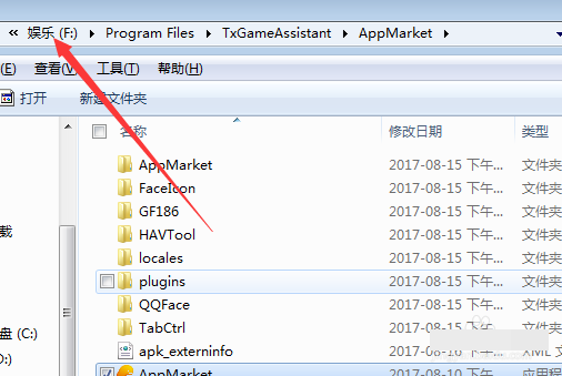 2、點擊一下f盤,找到騰訊手游助手總的目錄。