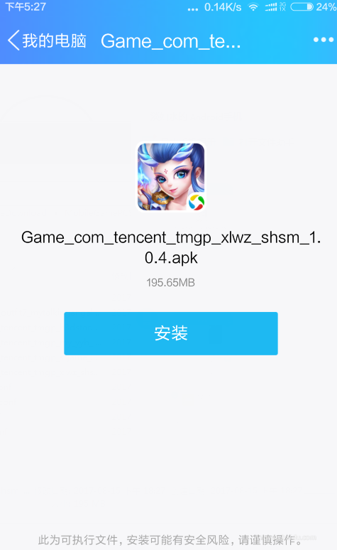 7、打開這個已經傳輸完成的文件,就彈出了可安裝按鈕。