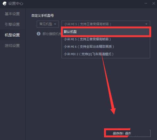 進入設置中心,點擊【機型設置】,將機型設置為默認機型后點擊【保存】。
